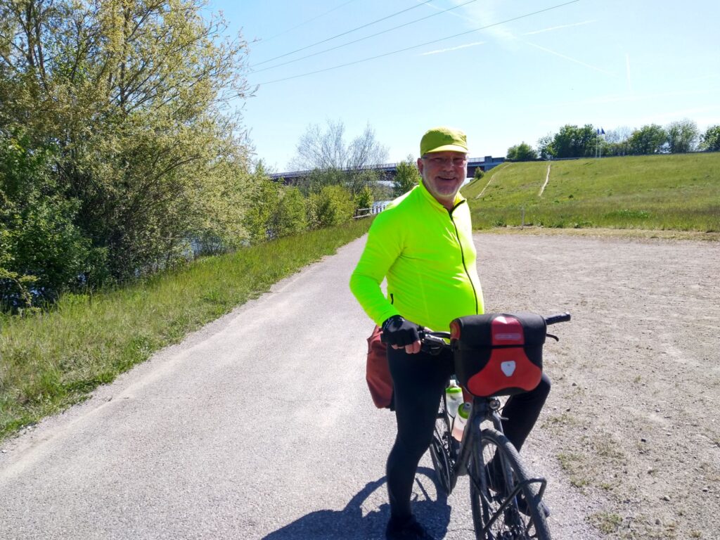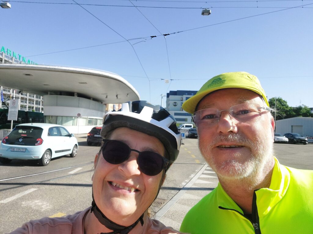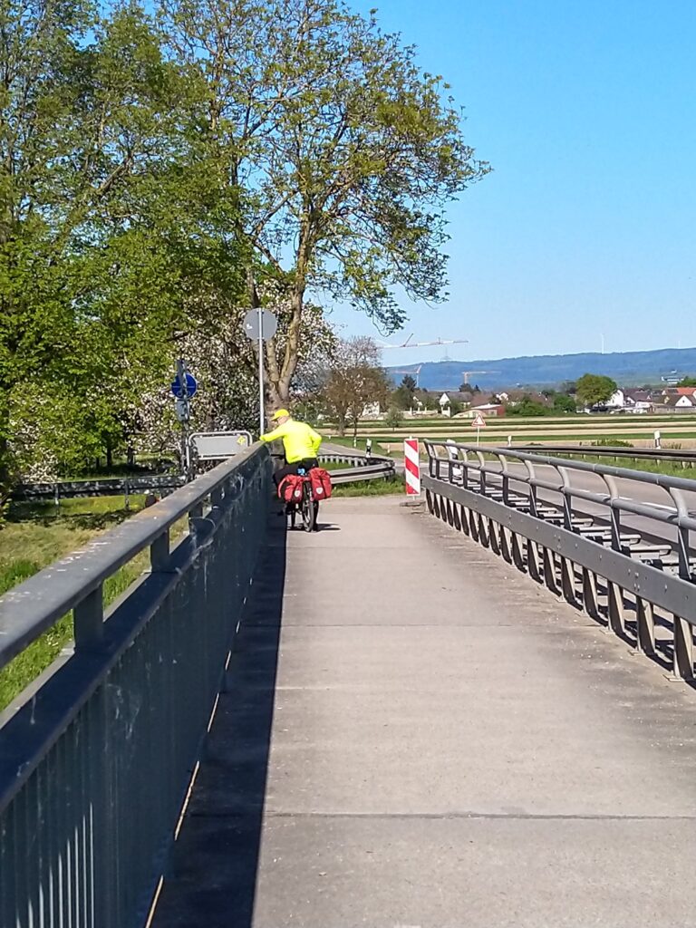 Heute queren wir die Grenze vier Mal: Über die grüne Grenze kurz vor Basel in die Schweiz, beim Dreiländereck wieder für wenige hundert Meter zurück nach Deutschland, über die Dreiländerbrücke nach Frankreich und bei Breisach wieder zurück nach Deutschland.