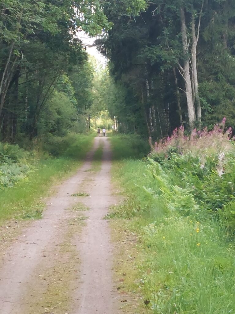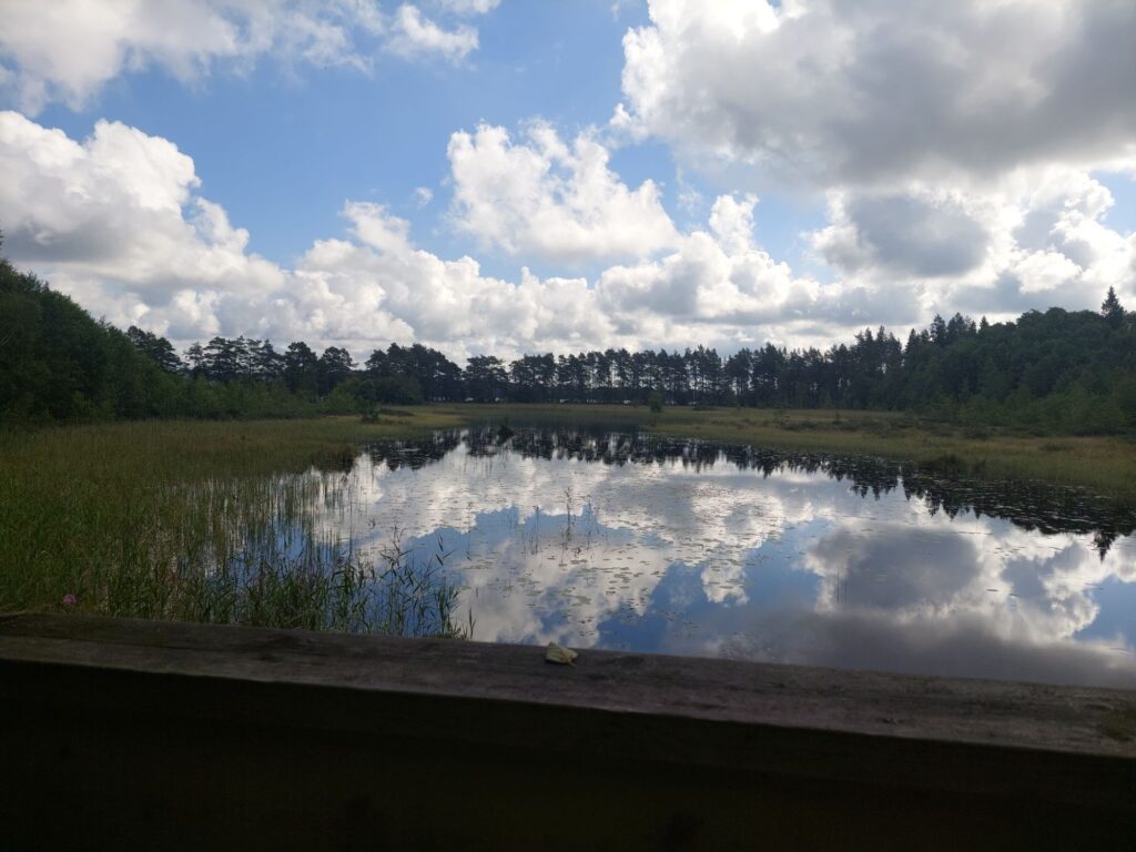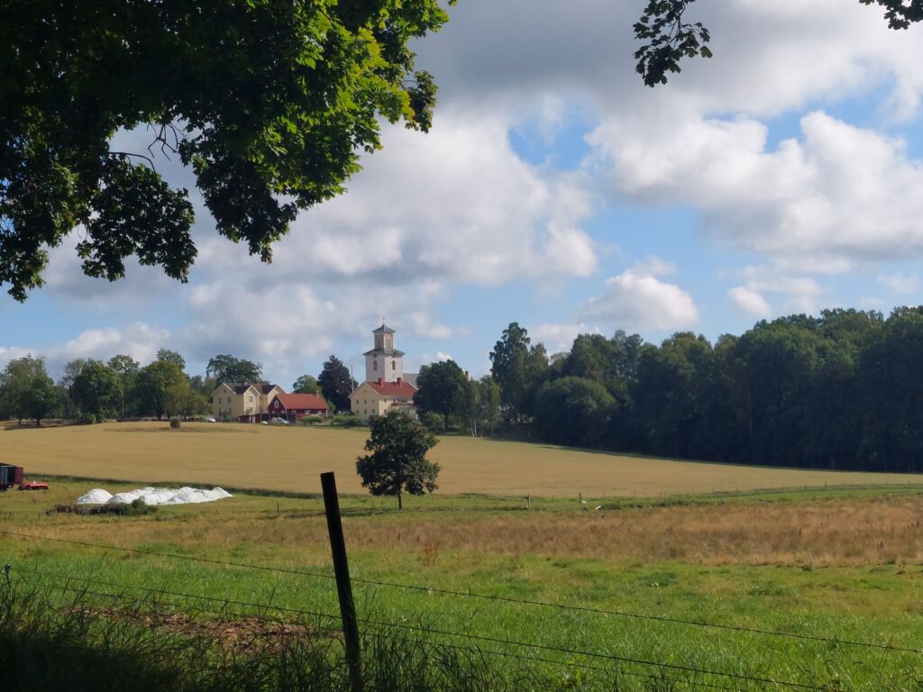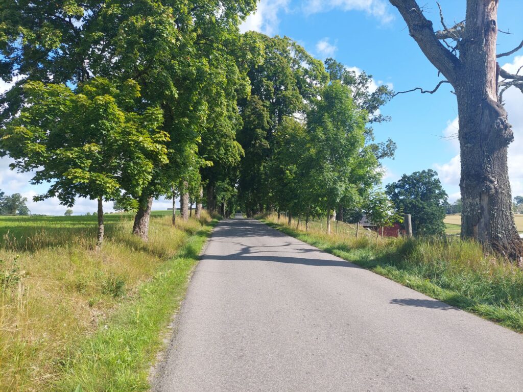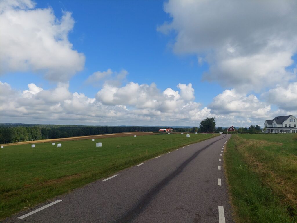 Und dazwischen? Sehr schöner Fahrtag im stetigen auf und ab. Mal kleine Straßen, mal Feldwege, hat mich oft an den Schwarzwald erinnert. Genau die richtige Temperatur zum Fahren. Morgens in Växjö trugen die wenigen die schon unterwegs waren kurze Hosen in Erwartung des sonnigen Tages. Am Nachmittag zog es etwas zu und es braute sich über Vetlanda ein Gewitter zusammen. Das verzog sich aber ohne einen Tropfen zu hinterlassen und jetzt sitze ich draussen, genieße ein Bier und warte auf meinen Lachs mit Gemüse und Herzoginkartoffeln.