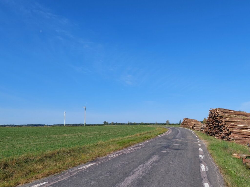 Der Morgen fing ganz gut an, es war schon angenehm warm und sonnig. Dann wurde es noch wärmer und noch sonniger, am Nachmittag kam dann zu der Wärme noch ein kräftiger Gegenwind dazu und manche kleine (natürlich nicht asphaltierte) Strassen waren sehr schlecht. Anstrengend. Im letzten Drittel zogen sich die Kilometer wie zäher Kaugummi dahin. Vor einer Brücke dachte ich noch: Bei dem Wind sollte ich besser meine Mütze ein- da kam auch schon ein Windstoß und die Mütze landete neben einer eingezäunten Autobahn. Keinerlei Chance über den Zaun zu klettern um die Mütze zu holen. SCH…ADE!