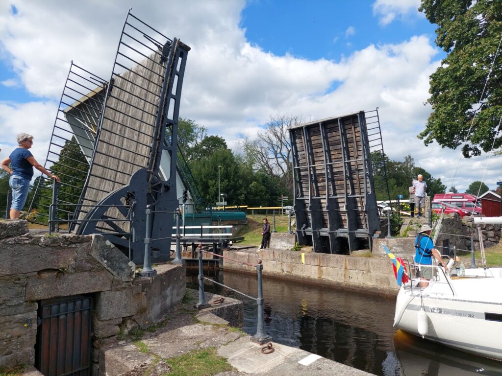 Die ersten zwei Drittel waren heute im Wald. Kein dichter, dunkler, sondern eher ein lockeres, lichtes Waldgebiet. Dann machte sich die Nähe des Vättern bemerkbar und Weizenfelder dominierten. In Forsvik querte ich den Götakanal, der hier den höchsten Punkt hat und die Schleuse mit dem höchsten Hub. Da konnte man mehr Deutsch als andere Sprachen hören. Auch sonst waren heute im Gegensatz zu den letzten Tagen recht viele Deutsche unterwegs.
