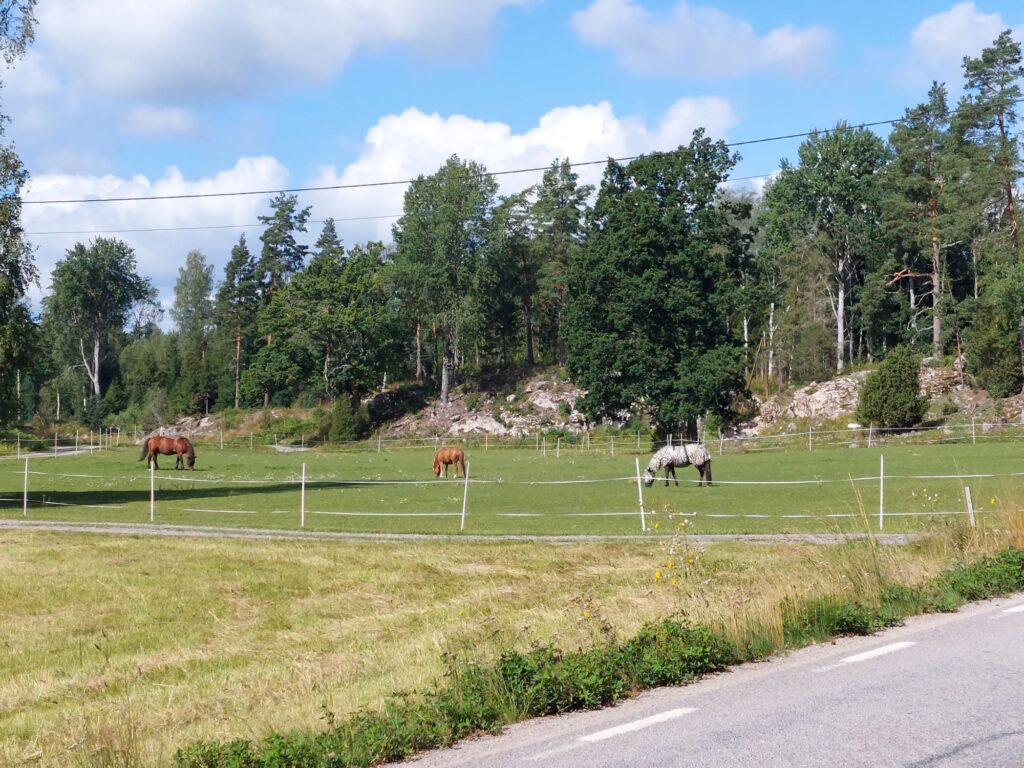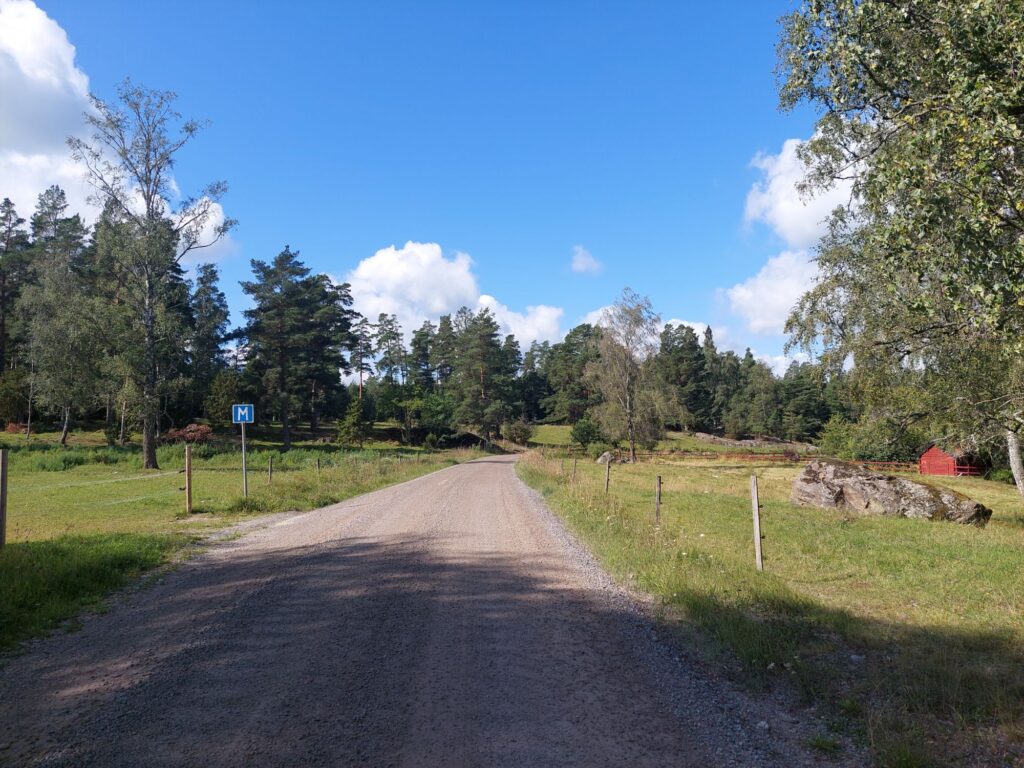 Es war gut, dass ich mich dafür entschieden hatte, die ersten 30 Kilometer mit der Bahn abzukürzen. Zum einen, weil es doch noch 90 Kilometer waren, also keine zu kurze Etappe. Zum zweiten, weil ich keine Lust hatte, mich durch den Vorstadtdschungel zu schlagen, zum dritten, weil es auch so genug Höhenmeter waren, zum vierten, weil der böige Wind, der auf der Hinfahrt nach Stockholm eher von hinten bließ, jetzt eher von vorne kam, zum fünften weil viele der kleinen „Kreisstrassen“ nicht asphaltiert waren, und sechstens einfach so.
